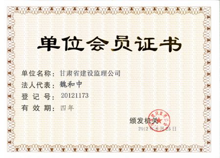 甘肃省建设监理公司单位会员证书