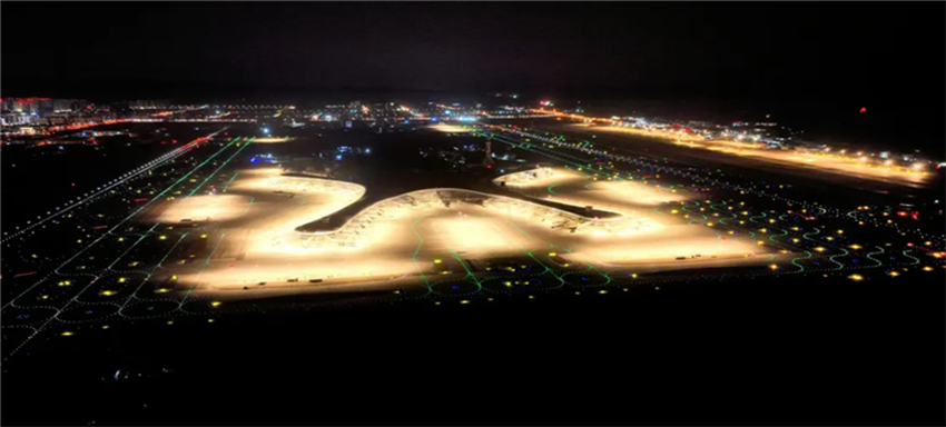 (兰州中川国际机场三期扩建工程飞行区亮灯实拍图)