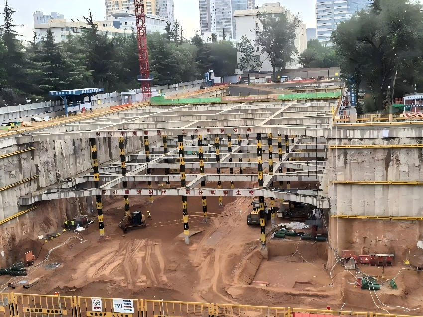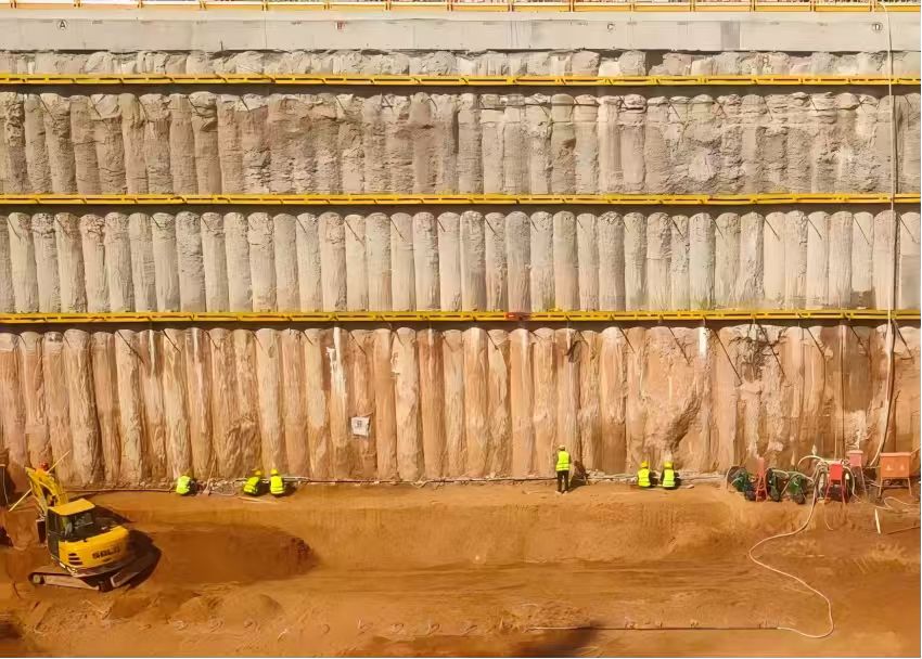 针对“咬合式排桩+内支撑+预应力锚索”这一复杂组合支护体系,监理团队以“结构协同、动态调整”为原则,督促施工单位进行支护设计参数的符合性复核与受力计算分析。在锚索张拉锁定、内支撑安装等关键工序实施前,全程监督施工单位完成专项施工方案技术交底与安全操作规程培训。通过创新设立“支护体系管控小组”,监理人员对施工过程全程跟踪,并对支护结构变形、内力等关键指标监测分析,有效衔接了支护结构施工质量与基坑整体稳定性控制,确保了在复杂地质条件下支护体系的安全可靠性达到100%的设计与规范要求。